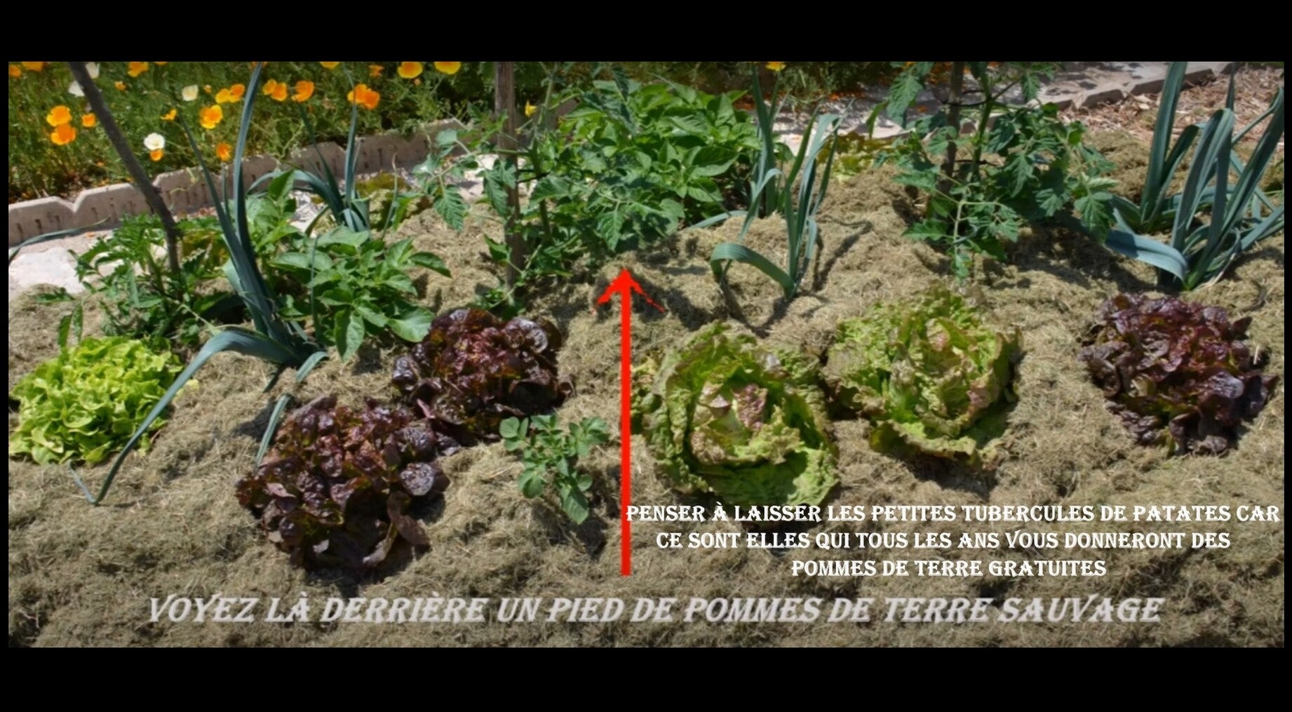 J'ai fait ces 6 vidéos afin de vous expliquer comment il faut faire pour avoir des légumes gratuits en abondance en faisant de la Permaculture Forestière où on n'a ni besoin de labourer ni d'arracher de mauvaises herbes et ni besoin...d'arroser, oui vous avez bien entendu, c'est la méthode du non agir sans retourner la terre sinon de l'alimenter par dessus, qui permet en plus d'avoir des patates gratuites (25 à 100Kg/An suivant bien entendu la surface que vous avez réservé dans votre bute pour elles) et salades gratuite (50 à 80/An) sans avoir besoin même (pour ces 2 types de légumes) de devoir les semer au préalable.